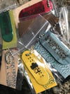 These lil mini deck keychains are maple veneer pressed/sanded/finished just like a regular deck but size 25mm x 84mm,But with a hole in tail for keychain/ring...The truck holes may not match up and the shaping and finishing may not be completely perfect as these were not meant for riding but a representation souvenir...Lazer engraved graphics and Some designs and colors may vary between keychains,as all selections are listed to choose from...All come with ball chain and latch....Thanks so much for your support.